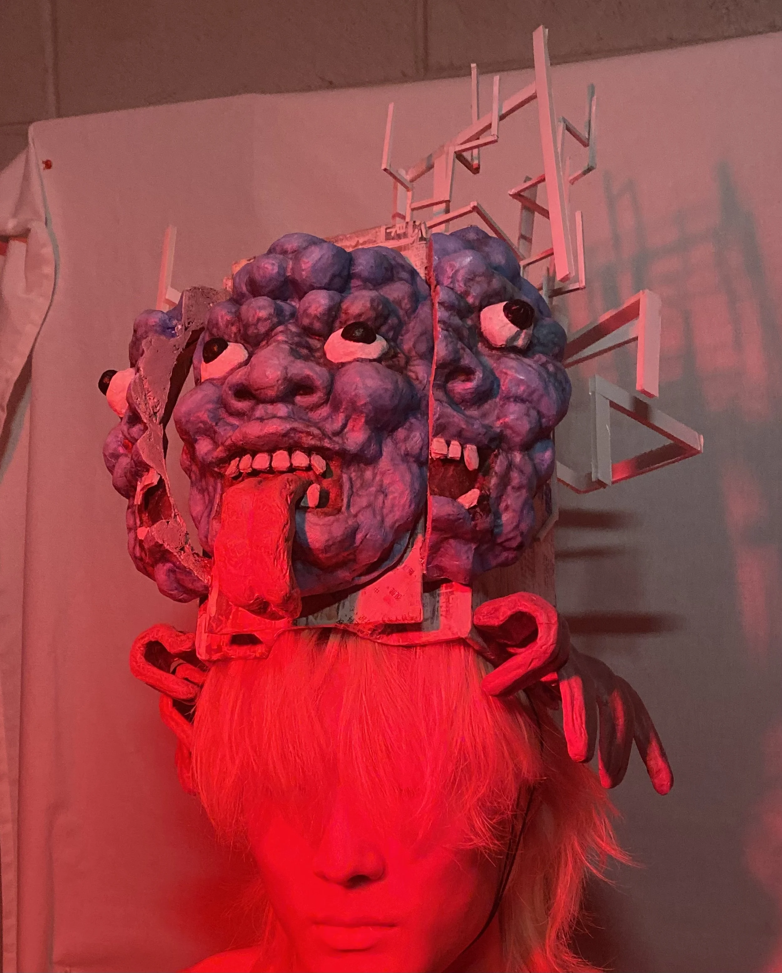 Fiberglass, hydrocal fgr 95, chicken wire, metal, video, sound